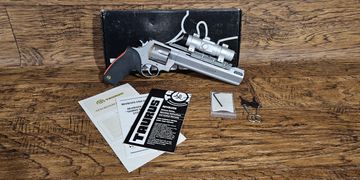 Double Action Revolver, 454 Casull Cal., 8-3/8" Ported Barrel with Vent-Rib, 5-Shot Fluted Barrel, Very Good Condition, No Rust or Corrosion Present! Comes with Factory Box and Accessories!